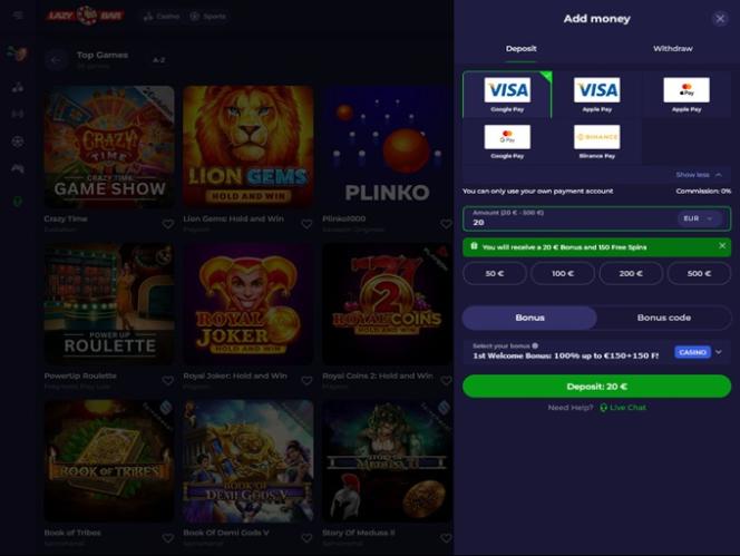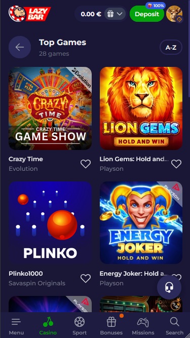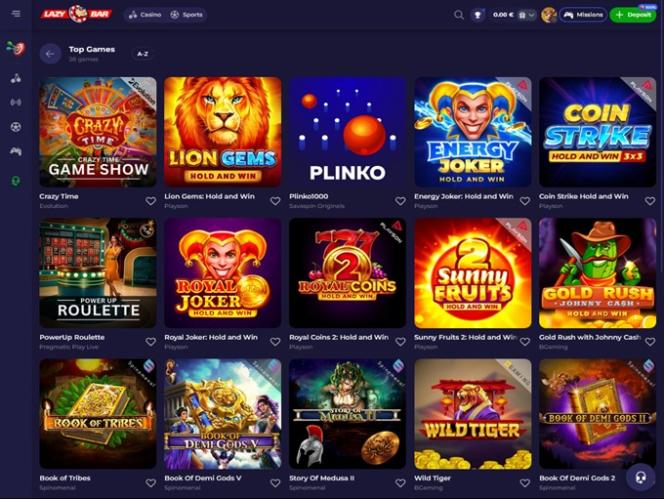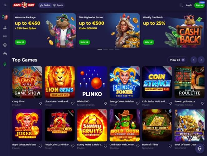 Lazybar Casino 除了优雅实用的设计外,还拥有海量的游戏供您体验。该游戏网站提供数千款在线老虎机、真人荷官、桌面游戏以及特供游戏。值得一提的是,这里还有几款独家原创游戏供您畅玩。