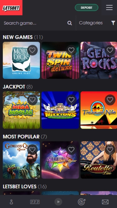 Letsbet 赌场由 Microgaming, Net Entertainment, Big Time Gaming, ELK Studios, Evolution Gaming, lightningboxgames, Quickspin, Thunderkick, Yggdrasil, Endorphina, Games Global, NextGen, WMS and SG Interactive提供支持,其游戏通过网页平台提供,可直接通过您的网络浏览器加载。这非常实用,因为它操作简单,无需在您的电脑上安装繁琐的软件。该网站还全面支持移动端游戏,让您通过智能手机或平板电脑即可畅玩。