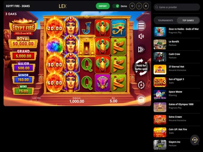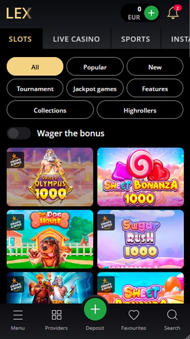 LEX Casino 平台汇聚了超过 120 家游戏工作室,在市场上拥有强大的竞争力。如此丰富的软件供应商选择,即使是最资深的玩家也能在这里找到满意的游戏,因为这里提供数千款独特的游戏。
