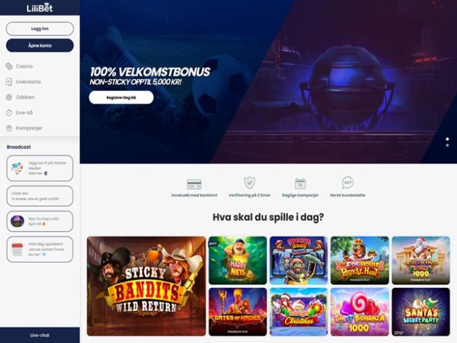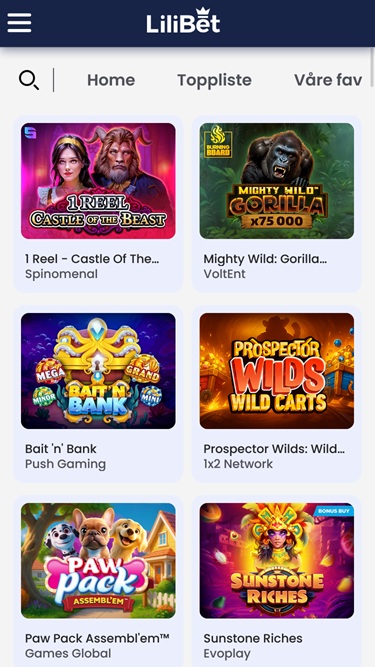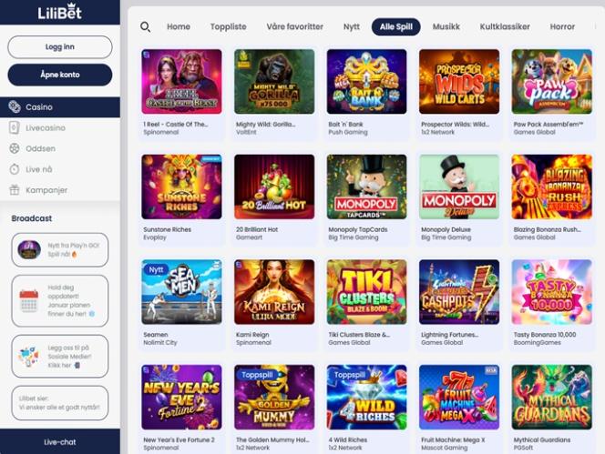 我们对 Lilibet 的第一印象是,这个品牌完全以玩家为中心。网站简洁明了,浏览起来非常方便。赌场平台布局合理,左侧主菜单包含赌场、真人娱乐场和体育博彩等主要类别。此外,您还可以访问“现场投注”,这是一个专门用于现场体育博彩的部分。此外,还有其他选项,例如:促销活动、条款和条件以及负责任的博彩——所以,在 Lilibet 上,一切都非常简单明了。