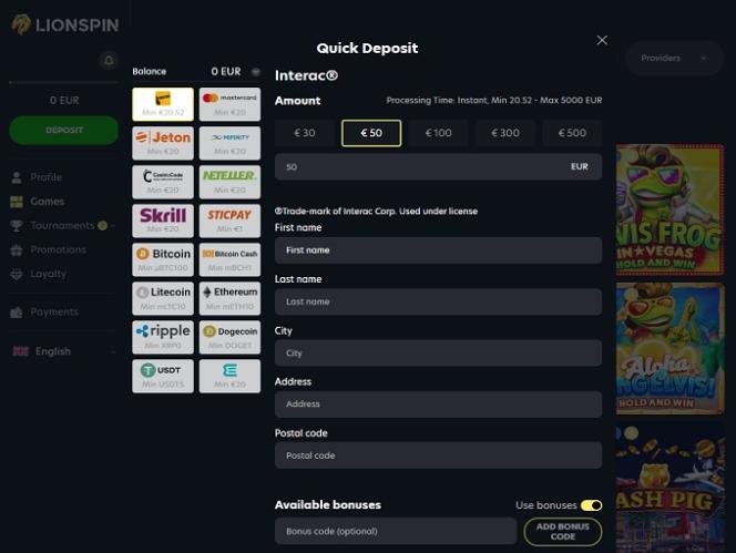 LionSpin Casino 是一家在线赌场,由一家根据库拉索法律注册的公司所有。该运营商面向来自加拿大、智利、爱尔兰、挪威、芬兰、波兰、新西兰和巴西的玩家。
