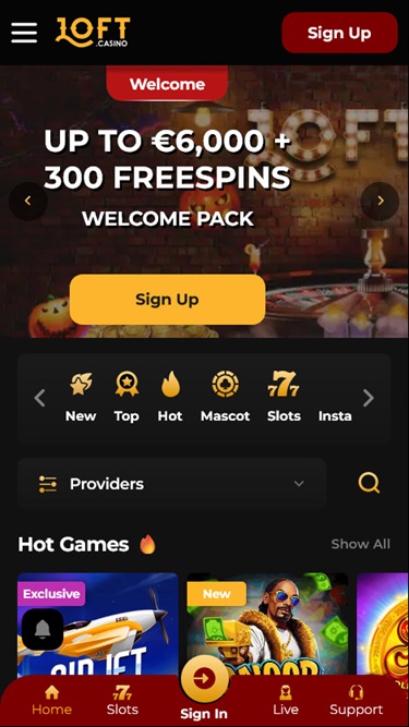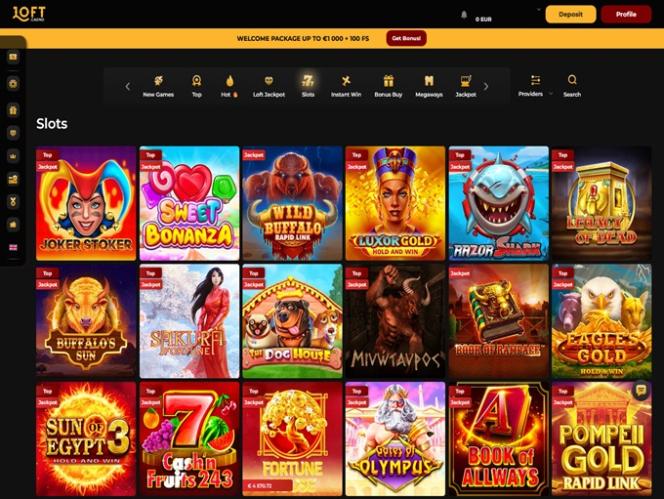 Loft Casino 拥有超过 140 家软件开发商,玩家只需点击几下即可体验丰富的游戏功能。这里有Playtech 、 Ezugi 、 Relax Gaming 、 Evolution和Quickspin等知名工作室,以及 Fantasma Games、Stormcraft Studios 和 PearFiction Studios 等众多值得选择的游戏工作室。