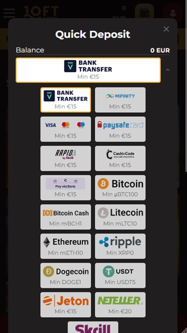 Loft Casino 支持德语、英语、法语和俄语。该平台的移动版本也非常稳定可靠,因此 iOS 和 Android 用户都可以享受到同样精致优质的游戏。