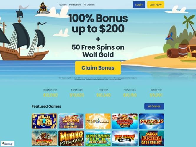 Lucky Admiral Ontario 给我们留下了极佳的第一印象。一进入网站,温暖而多彩的环境就映入眼帘。设计师选择了海盗主题,与网站鲜艳的配色和以明亮的海洋和异域岛屿为特色的艺术风格完美融合。