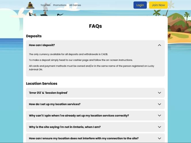 Lucky Admiral Ontario 受安大略省酒精和博彩委员会 (AGCO) 监管并持有其牌照。该品牌仅接受安大略省玩家加入平台,欢迎他们注册并探索其提供的所有活动和游戏。