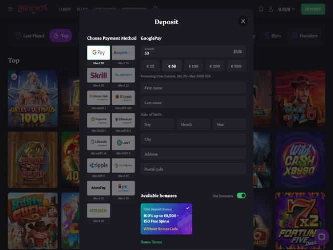 Lucky Circus Casino 是一个现代化的博彩网站,拥有丰富的游戏库,包含超过 10,000 种独特的游戏,包括在线老虎机、真人荷官、桌面游戏和速成游戏。该品牌旨在通过提供丰厚的促销计划来吸引大量玩家,该计划包含各种促销活动、奖金和锦标赛,并提供多种支付方式,包括比特币等加密货币。
