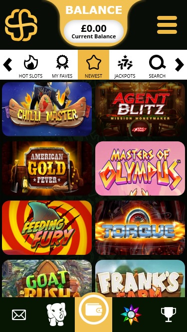 当我们浏览网站时,我们可以看到设计师们确实努力让Lucky Clover Spins Casino看起来非常美观且易于理解。界面易于浏览,很快就能上手。