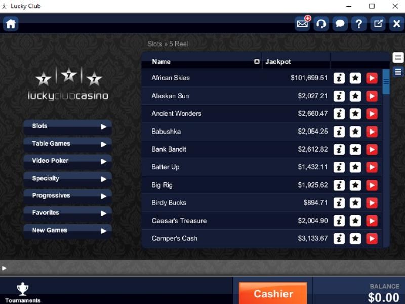 Lucky Club Casino 由 NuWorks提供支持,它通过基于网络且可下载的赌场客户端提供数十种游戏。其他游戏