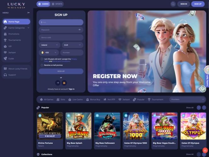 Lucky Friends Casino 是一个现代化的在线赌博网站,接受来自加拿大、新西兰、爱尔兰和芬兰的玩家。该品牌非常注重游戏种类和体育博彩选项,让玩家可以探索各种活动,包括真钱老虎机、真人荷官游戏、桌面游戏和即时崩溃游戏。此外,该赌场还提供全面的促销计划,包括众多奖金、福利和奖励。