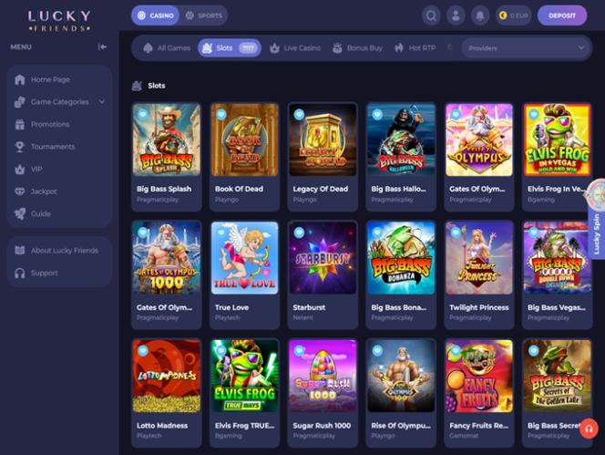 Lucky Friends Casino 也不例外,玩家可以在这里畅玩数千款精彩游戏。这家博彩网站已获得超过 90 家独立软件开发商的授权,数量可观。游戏库内容丰富,涵盖各种主题、机制和功能。