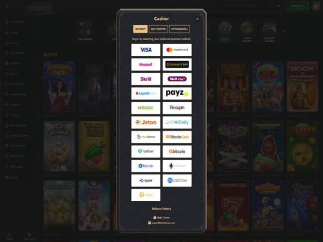 Banking银⾏业务选项 的 Lucky Heroes Casino