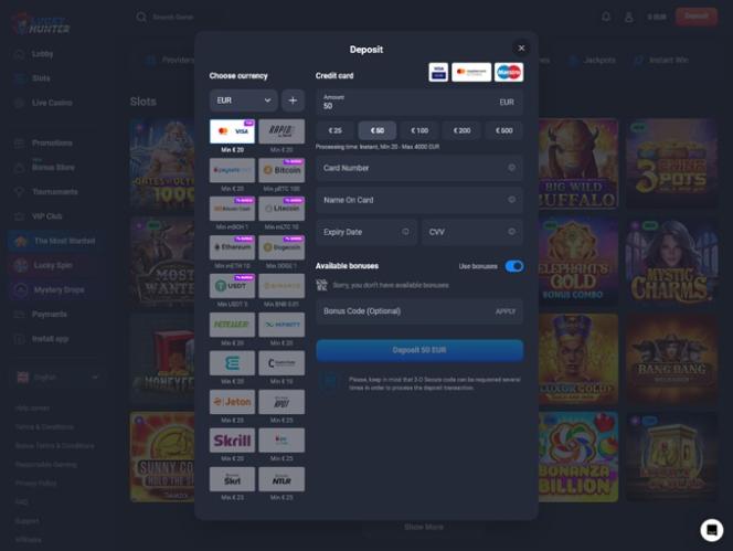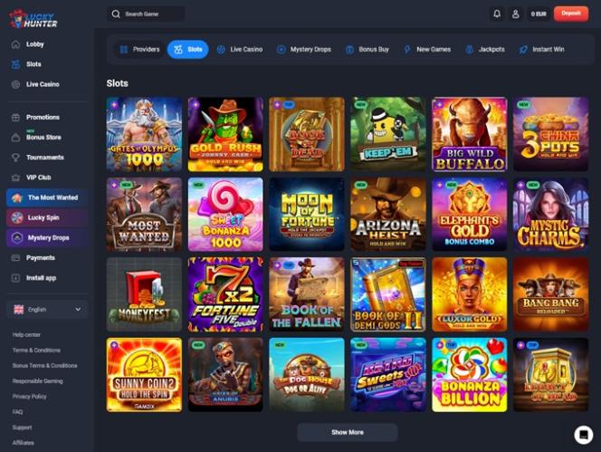 Lucky Hunter Casino 是一家经验丰富的在线赌场,由一家根据库拉索法律注册成立的公司所有,并由安的列斯群岛政府 (Antillephone) 颁发牌照并监管。该运营商主要面向奥地利、瑞士、爱尔兰和新西兰的玩家,其网站提供德语、英语、法语、意大利语和挪威语本地化版本。乍一看,它看起来非常吸引人,我们迫不及待地想去探索一下。