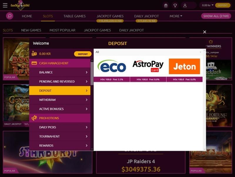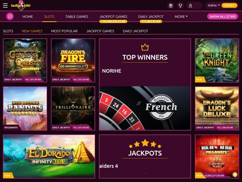 Lucky Niki 提供大量视频老虎机游戏,其中许多游戏来自 Microgaming 和 Net Ent 等顶级开发商。寻求累积奖金的玩家会很高兴知道这里有大量的大奖可供选择,移动老虎机也是如此。