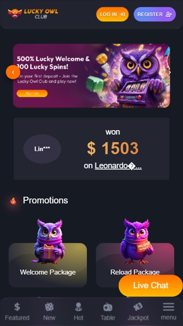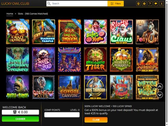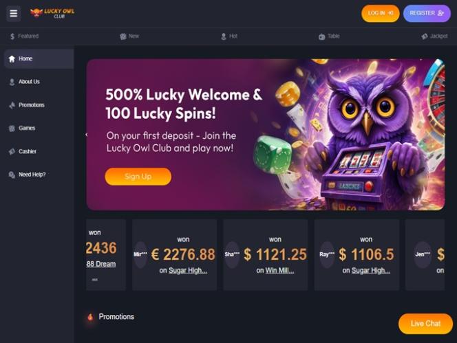 Lucky Owl Club Casino 不支持真人荷官部分,但这并不意味着玩家将无法通过玩本网站上提供的其他赌场游戏类型和游戏类型来体验高度动态、互动的内容。