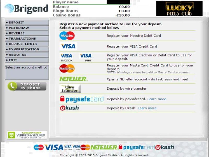 Lucky Reels Club 赌场由 Net Entertainment, Random Logic, Barcrest, Dragonfish, EYECON, Wizard Games, Blueprint Gaming, Pariplay, PartyGaming and WMS提供支持,并通过赌场的网络平台提供。该赌场还提供移动赌场,允许玩家在智能手机和平板电脑上进行游戏。Baccarat