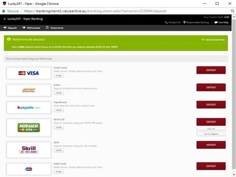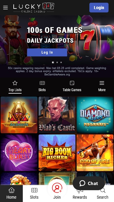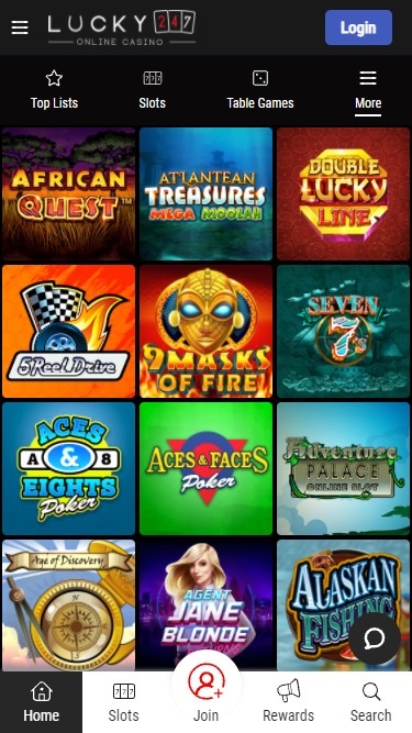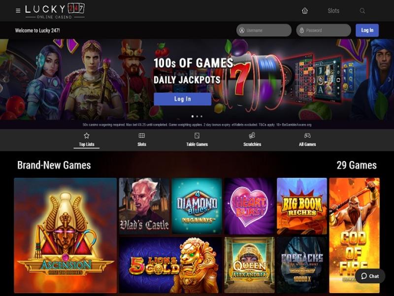 Lucky247 是一家自 2012 年起运营的在线赌场,由 To Play Central (Ltd) 拥有和运营。该赌场以其丰厚的累积奖金池、eCOGRA 认证、良好的赌场管理和出色的移动网站而闻名。
