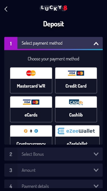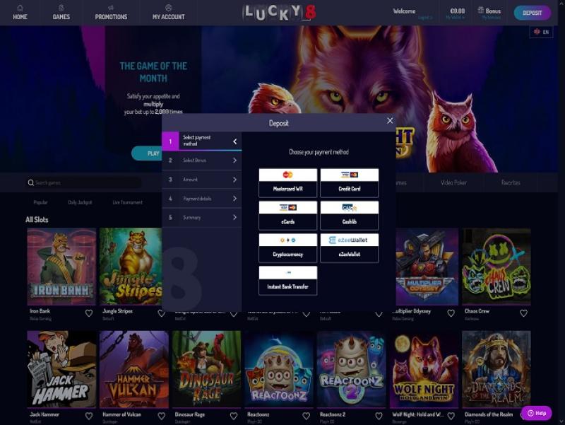Lucky8 赌场由 Net Entertainment, BetSoft, Amatic Industries, Big Time Gaming, Evolution Gaming, Novomatic, Oryx, Play'n GO, playson, Quickspin, Relax Gaming, Thunderkick, Yggdrasil, Pragmatic Play, Nolimit City, Red Tiger Gaming, Booongo, Spinomenal, Felix Gaming, Fantasma Games, Spin Games, BGAMING, Electric Elephant Games, Pocket Games Soft, Bulletproof Games, Gluck Games, Golden Rock Studios, Swintt, Blue Guru Games, bluberi, GamesOS, Greentube, Gamomat, Bally Wulff, Reflex Gaming, Storm Gaming Technology, Wild Streak Gaming, Jade Rabbit Gaming, STHLM Gaming, 4ThePlayer, AvatarUX, Gamevy, ReelPlay, Japan Technicals Games, BB Games, Boomerang Studios, Hacksaw Gaming, Max Win Gaming, Bang Bang Games, Gamzix, Arcadem, Peter And Sons, Aviatrix, 3 Oaks Gaming, Print Studios, Gaming Corps, Four Leaf Gaming, Atomic Slot Lab, Reel Kingdom and Givme Games提供支持,其游戏通过网页平台提供,您可以通过电脑或移动设备上的网页浏览器访问。网站界面美观,操作简便,我只用了几分钟就注册并开始游戏。Baccarat