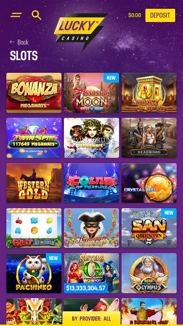 LuckyCasino 由 Microgaming, Net Entertainment, Barcrest, Big Time Gaming, ELK Studios, Evolution Gaming, Oryx, Play'n GO, Quickspin, Rabcat, Relax Gaming, Thunderkick, Yggdrasil, Booming Games, Stakelogic, Pragmatic Play, Nolimit City, Felt Gaming, Red Tiger Gaming, Spinomenal, Fantasma Games, Triple Edge Studios, Northern Lights Gaming, Stormcraft Studios, Switch Studios, Bulletproof Games, All41 Studios, Gluck Games, Gameburger Studios, Neon Valley Studios, Swintt, Shuffle Master, SpinPlay Games, GONG Gaming, On Air Entertainment, Buck Stakes Entertainment, Games Global, 2by2 Gaming, Bally Technologies, GamesOS, Leander Games, Inspired Gaming, SG Interactive, Gamomat, Red7Mobile, Scientific Games, Bally Wulff, Just For The Win, PearFiction Studios, Slingshot Studios, Fortune Factory Studios, Jade Rabbit Gaming, 4ThePlayer, AvatarUX, Gamevy, Crazy Tooth Studio, Japan Technicals Games, Alchemy Gaming, Snowborn Games, Hacksaw Gaming, Max Win Gaming, Bang Bang Games, Slotmill, Peter And Sons, Eurostar Studios, Aurum Signature Studios, Area Vegas, RAW iGaming, Print Studios, Gaming Corps, HammerTime Games, INO Games and Nailed It! Games提供支持,其游戏通过网页平台提供。此外,还提供移动平台,方便在智能手机和平板电脑上畅玩。