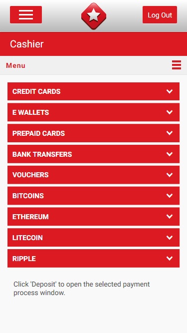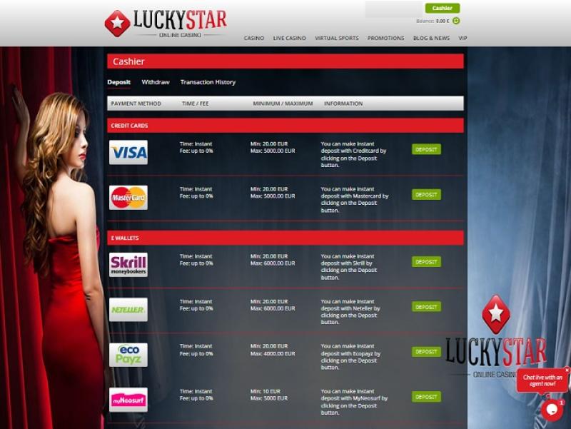 幸运星赌场 (Lucky Star Casino) 的银行系统种类繁多,存款和取款均可通过信用卡、电子钱包、电汇和银行转账进行。赌场所有提款的等待时间为 48 小时,交易将在 24 小时内处理完毕。需要注意的是,赌场每周提款限额为 3,000 美元,每月提款限额为 6,000 美元。
