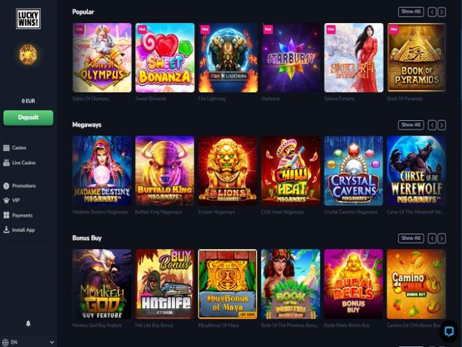 LuckyWins 赌场在这方面表现出色,玩家可以在这里畅玩近 100 家不同的软件提供商。这可不是个小数目,我们很少能在一个地方看到如此众多的游戏提供商。这里几乎不会让您失望,因为这里既有我们熟知和喜爱的所有知名游戏,也有一些鲜为人知的游戏,为玩家提供了大量的尝试和刺激。