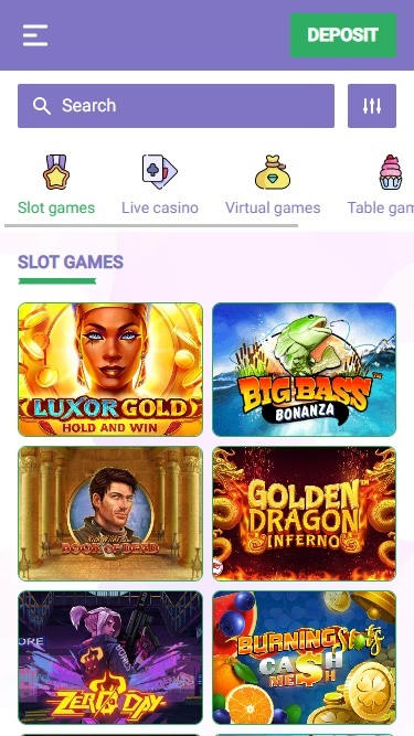 玩家可以在这里尝试顶级老虎机游戏,例如:Reactoonz、Royal Coins 2: Hold and Win、Big Bass Splash、Wanted Dead or a Wild、9 Coins Hold the Jackpot、The Dog Hou$e Megaways、Legacy of Dead、Zeus the Thunderer、Zero Day、Wolf Fang、Wild Hot 40、9 Burning Dragons、Golden Buffalo、Mystic、Fortune Deluxe、Mystic Fortune Deluxe、Book of The Divine、Rich Wilde and the Book of Dead、Book of Gold Multichance、Luxor Gold: Hold and Win、Luxor Gold: Hold and Win、Golden Dragon Inferno、Sugar Rush、Hot Slot: 777 Crown、Seven Seven、Honey Money、Hot Hot Fruit、Wild Justice、20 Boost Hot、Moon Princess 100、Gates of Olympus、Big Bass Bonanza、Lucky Cat、Chaos Crew、Burning Slots Ca$h Me$h、Rise Of Olympus 100、Stunning Hot Remastered、Poseidon's Rising、Bigger Bass Bonanza、Leprechaun's Coins、Age Of Pirates、Sweet Bonanza、Chicken Madness、The Dog Hou$e、Charms and Treasures、Rich Wilde and the Tome of Madness、Arctic Fruits、American Spirit、Aztec Mystery、Blood、4th and Goal、Alice In DreamLand、Cave Of Fortune、A Beautiful Mind、Big Wild Buffalo、Safari Sam 2、Alien Fruits、All Lucky Clovers、King Cobra、15 Dragon Pearls: Hold and Win、3 Coins、Astro Wild、5 Dragons Legend、Alice、Fruit King、God of Chess、Vmpire Kiss、20 Clovers Hot 等等。