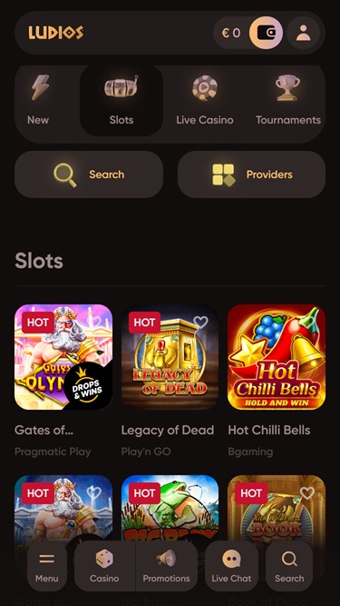 正如我们之前提到的,Ludios 赌场与超过150 家备受推崇的iGaming 软件供应商建立了合作关系,旨在打造一个能够满足所有玩家需求的丰富游戏库。这些供应商包括Evolution Gaming、 Microgaming 、NetEnt、Pragmatic Play、Yggdrasil、Belatra、Booming Games和Endrophina 等行业巨头,因此您可以放心,您一定会获得充分的娱乐体验。