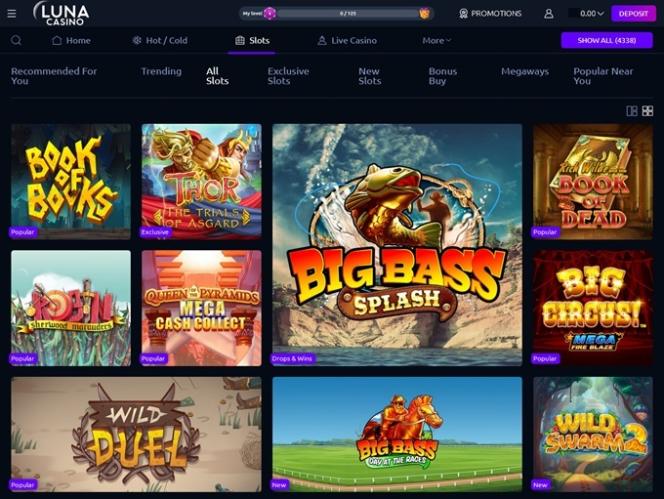 Luna Casino 拥有海量在线老虎机游戏,提供各种类型的游戏,适合各种口味和经验水平的玩家。老虎机部分既有经典老虎机游戏,也有新游戏,这些游戏主题热门,音效设计出色,画面精美,并拥有额外回合、乘数、奖励旋转、百搭符号、分散符号等众多吸引人的功能。