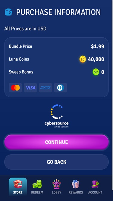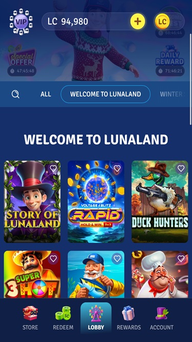 首先要说明的是,这里的所有游戏都可以完全免费畅玩,无需任何消费。这意味着您可以通过玩所有游戏或参与品牌举办的各种促销活动来赚取虚拟货币——Luna Coins 和 Sweeps Coins。