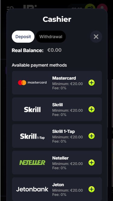 - 提款使用与存款相同的付款方式处理,运营商有权自行决定设定最低和最高存款金额。