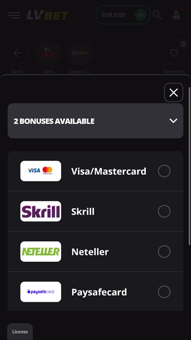 LV Bet Casino 由 Microgaming, Net Entertainment, 1x2gaming, Big Time Gaming, ELK Studios, Evolution Gaming, EYECON, Ezugi, Novomatic, Oryx, Play'n GO, playson, Relax Gaming, Thunderkick, Endorphina, Wazdan, Betgames, Booming Games, Stakelogic, Pragmatic Play, Nolimit City, Red Tiger Gaming, Spinomenal, Red Rake Gaming, Skillzzgaming, Fantasma Games, FunFair, Kalamba, Skywind, Spinmatic, Triple Edge Studios, BGAMING, Northern Lights Gaming, Fazi, Evoplay, Stormcraft Studios, Switch Studios, Pocket Games Soft, All41 Studios, Gluck Games, Gameburger Studios, Pulse 8 Studios, Neon Valley Studios, Swintt, SpinPlay Games, SmartSoft Gaming, GONG Gaming, Blue Guru Games, On Air Entertainment, Holle Games, Buck Stakes Entertainment, Elysium Studios, Games Global, Wizard Games, Ainsworth, Blueprint Gaming, Greentube, Leander Games, Pariplay, Push Gaming, Gamomat, Reel Time Gaming, BF Games, Bally Wulff, Iron Dog Studio, Old Skool Studios, Foxium, Just For The Win, Storm Gaming Technology, Wild Streak Gaming, Slingshot Studios, Fortune Factory Studios, Green Jade Games, RubyPlay, 4ThePlayer, Gamevy, Crazy Tooth Studio, NetGaming, ReelPlay, Japan Technicals Games, Alchemy Gaming, Black Pudding Games, Snowborn Games, Hacksaw Gaming, Gold Coin Studios, Half Pixel Studios, Slotmill, Peter And Sons, Eurostar Studios, Aurum Signature Studios, Lucksome Gaming, Area Vegas, RAW iGaming, ELA Games, Leap Gaming, Spribe, Circular Arrow, Gaming Corps, HammerTime Games, Nailed It! Games, Atomic Slot Lab, Neko Games, Reel Kingdom, Oros Gaming, Indigo Magic, Kitsune Studios and Sneaky Slots提供支持,该网站拥有基于网页的即时游戏平台,可直接通过您的网络浏览器加载。无需下载任何软件,即可流畅运行。该网站还支持移动游戏,您可以通过智能手机或平板电脑进行投注。