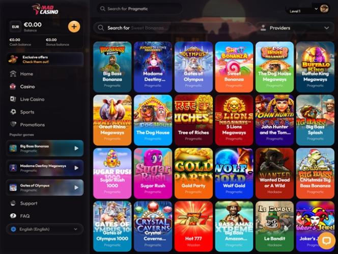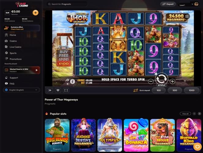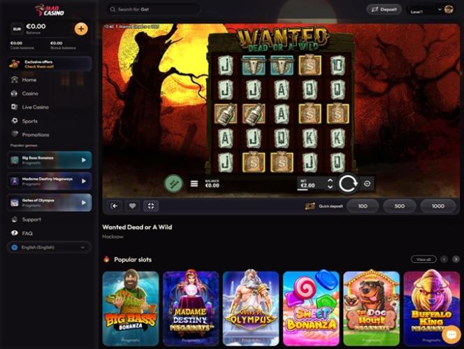 我们建议您先体验丰富的真钱老虎机游戏。Mad Casino 精心挑选了众多热门游戏,即使是最资深的玩家,无论他们的喜好和口味如何,都能找到心仪之选。您可以畅玩经典老虎机、最新游戏、Megaways、集群支付、奖励购买以及其他各种游戏类型和子类别。