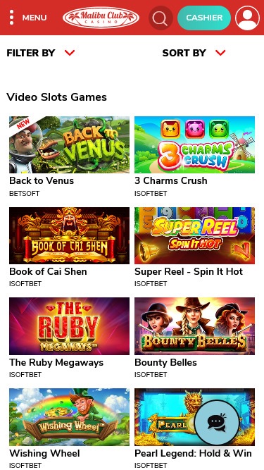 马里布赌场由 BetSoft, Ezugi, playson, Endorphina, Wazdan, Booming Games, Booongo, LuckyStreak, Red Rake Gaming, Fugaso, Kalamba, BGAMING, Gluck Games, KA Gaming, Reevo, Tom Horn Gaming, Wager Gaming, BF Games, Gamevy, Arcadem, Dragon Gaming and Dragoon Soft提供支持,其游戏通过可下载的软件和即时游戏平台提供。想要随时随地畅玩的玩家也可以访问赌场的移动网站。