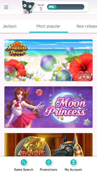 该网站设有会员计划,并提供可爱的动漫风格小猫。等级如下:青铜级、白银级、黄金级、红色级和彩虹级。这些等级的玩家在奖金、免费礼品、奖励和返现方面将获得更优厚的投注要求。