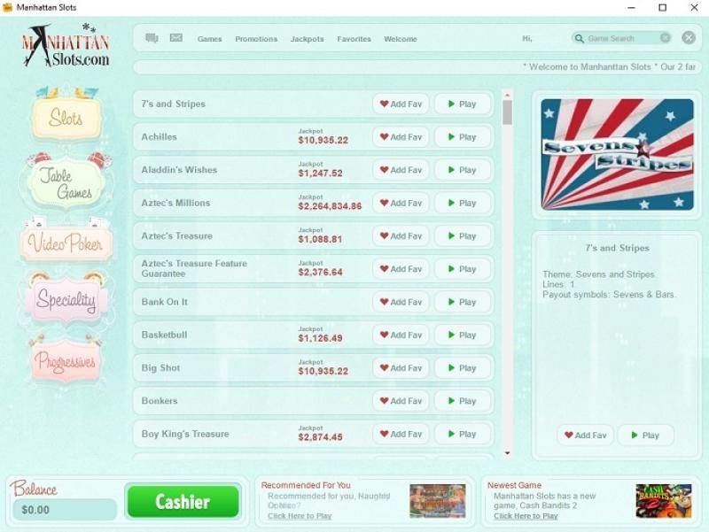 Real Time Gaming and Spinlogic Gaming软件为曼哈顿老虎机平台提供产品。下载版和即时播放版均可访问游戏大厅。