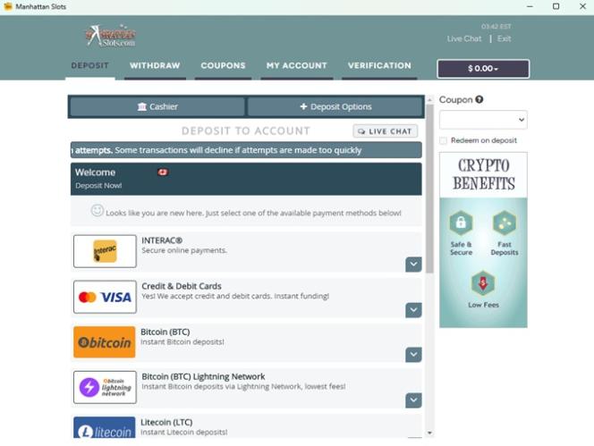 曼哈顿老虎机的银行系统非常出色,为玩家提供多种存款和取款方式。由于该赌场面向美国玩家,因此存在一些限制,但提款速度通常快速且安全。提款条款合理,但如果说该赌场的银行系统存在一个不足之处,那就是曼哈顿老虎机每周都会限制非累积奖金的金额。尽管如此,这家赌场及其姊妹网站提供的银行服务方式,在我们见过的面向美国的在线博彩网站中,是数一数二的。
