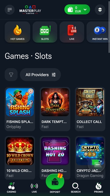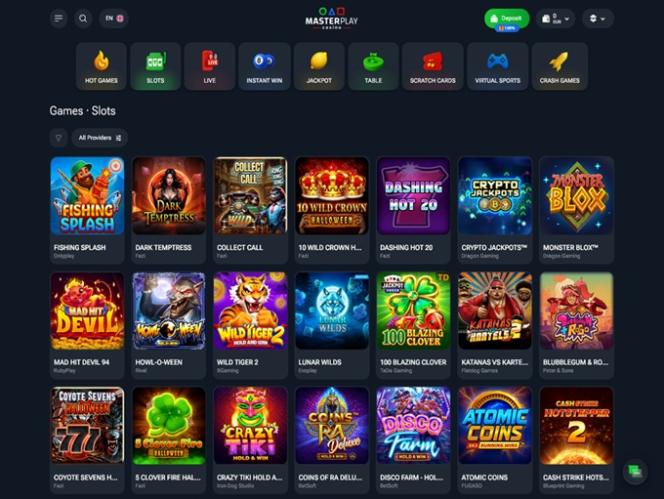 如果您决定在这里创建帐户,您将能够体验种类繁多的游戏。MasterPlay 允许玩家浏览多种游戏类型的众多类别和子类别,包括老虎机等数字游戏以及二十一点和轮盘赌等真人荷官游戏。
