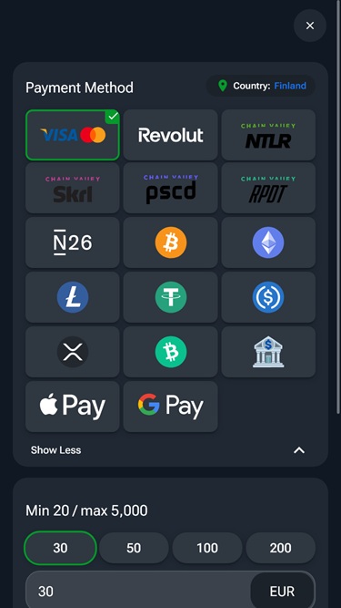 由于这是一个主要以加密货币为主的博彩网站,玩家可以使用多种加密货币进行存款和取款。这些支付方式允许即时交易,速度极快,但比传统的银行支付方式安全得多。