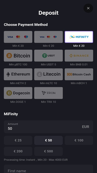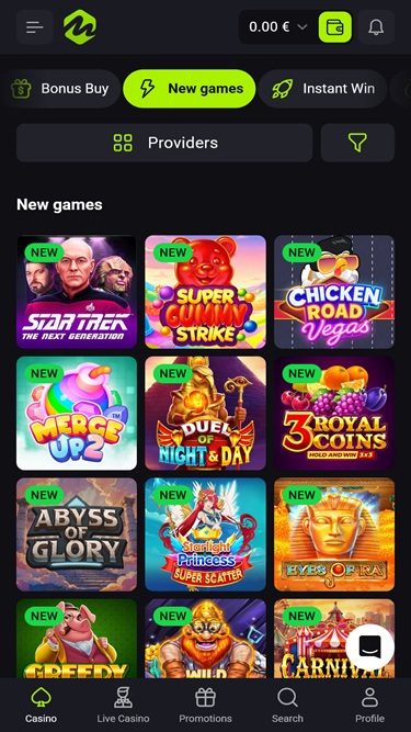 最后,这家在线赌场还专门设有一个“即时崩溃游戏”专区,您可以在这里畅玩一系列精彩纷呈、机制简单、回合刺激的游戏。推荐您体验Plinko、Pilot Piggy、Avion、Twist、Chicken Train、Piggy Tap、Chicken Road、Astronaut、Aviator、CosmoX、Goal X、Top Eagle 和 Need for X 等游戏。