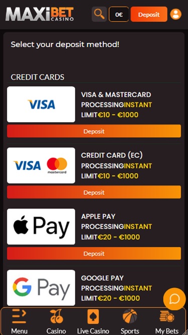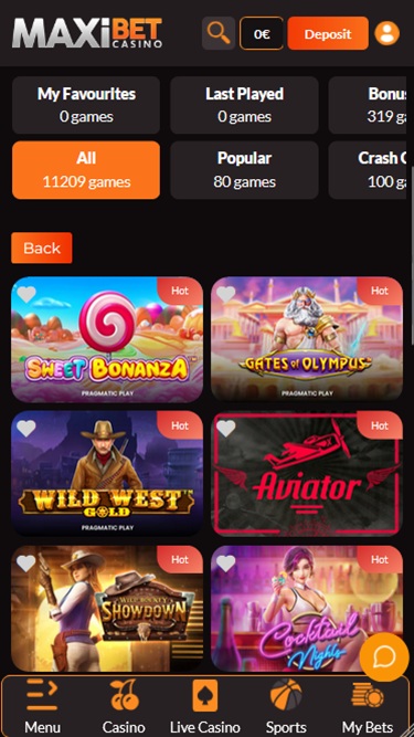 MAXiBET 赌场是一个大型在线赌场和体育博彩网站,提供一系列令人印象深刻的赌场游戏和投注选项,包括真钱老虎机、真人荷官、即时崩溃游戏和桌面游戏,同时还提供丰富的促销和奖金选择。该品牌主要面向德国玩家。