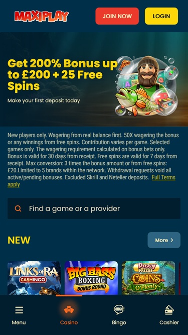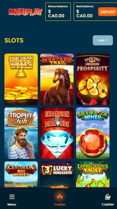 MaxiPlay Casino 由 Net Entertainment, Playtech, 1x2gaming, Big Time Gaming, ELK Studios, Evolution Gaming, EYECON, lightningboxgames, Novomatic, Play'n GO, Quickspin, Rabcat, Thunderkick, Wazdan, Pragmatic Play, Nolimit City, Red Tiger Gaming, Spinomenal, SYNOT Games, Skywind, Triple Edge Studios, Northern Lights Gaming, Stormcraft Studios, Switch Studios, All41 Studios, Gameburger Studios, Pulse 8 Studios, Neon Valley Studios, Shuffle Master, SpinPlay Games, Real Dealer Studios, GONG Gaming, On Air Entertainment, Buck Stakes Entertainment, Games Global, Blueprint Gaming, Greentube, Tom Horn Gaming, Inspired Gaming, SG Interactive, CORE Gaming, BF Games, Iron Dog Studio, Old Skool Studios, Foxium, PearFiction Studios, Slingshot Studios, Fortune Factory Studios, Gamevy, Crazy Tooth Studio, Alchemy Gaming, Snowborn Games, Hacksaw Gaming, Gold Coin Studios, Half Pixel Studios, Aurum Signature Studios, Area Vegas, Wishbone Games, Circular Arrow, HammerTime Games, INO Games, Nailed It! Games, Neko Games, Oros Gaming and Light & Wonder提供支持,赌场的游戏通过基于网络的平台提供,并且还为想要在智能手机和平板电脑上玩游戏的玩家提供移动网站。