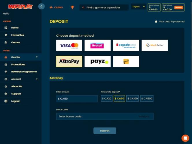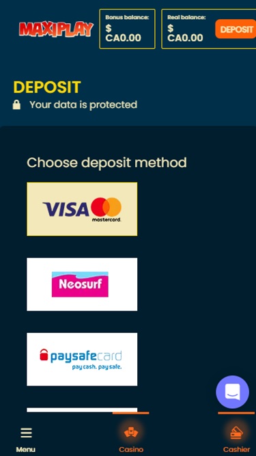 Banking银⾏业务选项 的 MaxiPlay Casino