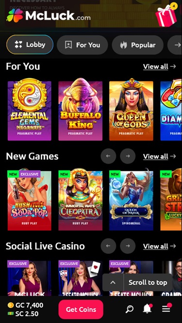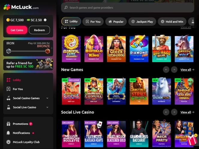 在市场上数千家社交赌场中,面向美国的 McLuck Casino 试图通过向玩家提供大量娱乐选择来打响名声,这些娱乐选择包括赌场风格的游戏,例如在线老虎机、真人荷官和 Slingo 游戏,同时提供一系列丰厚的奖金、促销和累积奖金,让玩家从中获取奖励。