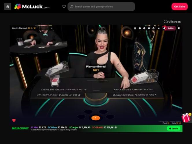 但这还不是全部。除了拥有丰富的在线老虎机游戏库外,McLuck 赌场还致力于满足那些追求更沉浸式、更具氛围体验的玩家的需求。因此,您可以畅玩多种轮盘赌和二十一点游戏,其中最受欢迎的是7 Seats Mcluck 二十一点、重力二十一点、美式轮盘赌和重力轮盘赌。