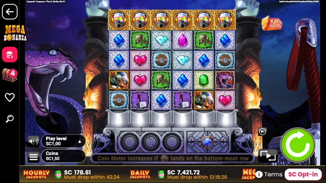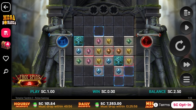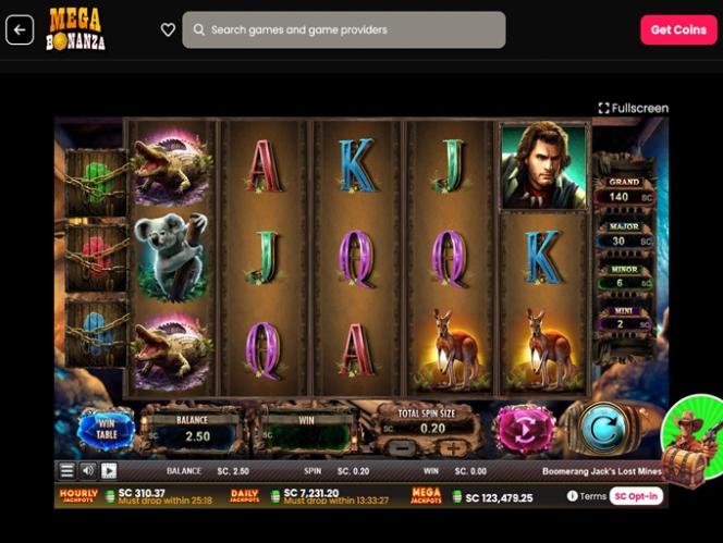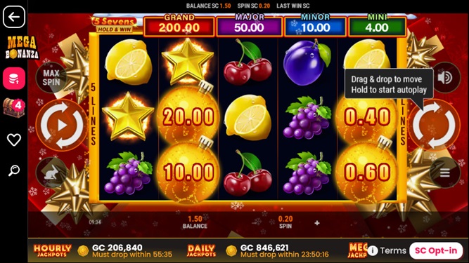 在 MegaBonanza,玩家可以体验两种不同的游戏模式:金币模式和抽奖币模式。使用金币时,玩家可以畅玩所有游戏,但无需将金币兑换成任何实体奖励。