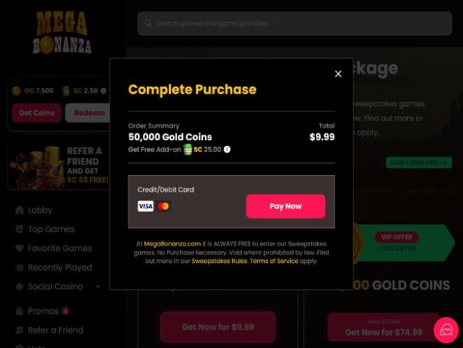 MegaBonanza 设有专属商店,玩家可以购买各种包含免费抽奖币的金币礼包。玩家可以使用Visa或Mastercard购买任何礼包。
