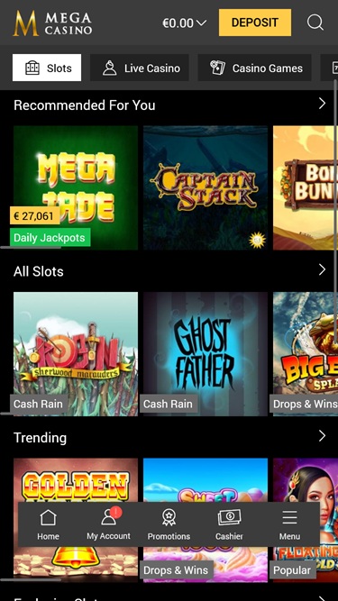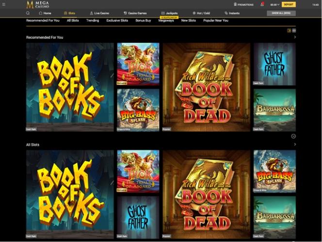 MegaCasino 提供种类繁多的电子老虎机和经典老虎机游戏,其中包括一些世界顶级开发商的游戏。此外,还有累积奖金,只需旋转一次转轴即可赢得巨额现金奖励。