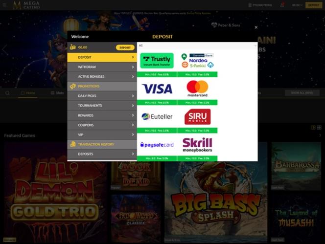 Banking银⾏业务选项 的 MegaCasino