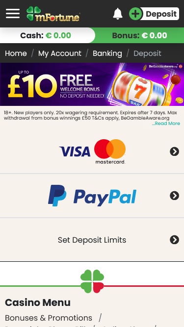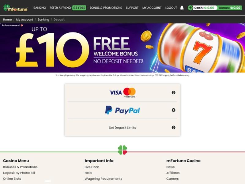 Banking银⾏业务选项 的 mFortune Mobile Casino