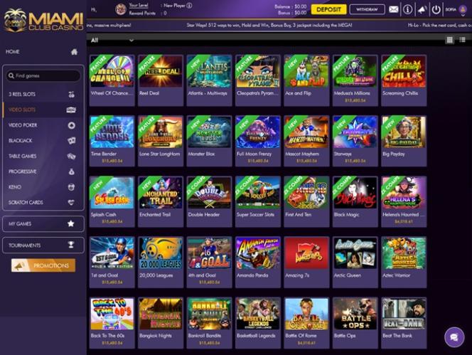 迈阿密俱乐部由 Arrows Edge, NextGen, Wager Gaming and Dragon Gaming提供支持,是少数使用该软件的在线赌场之一。该软件支持锦标赛,内容丰富,包括免费锦标赛和每日锦标赛。