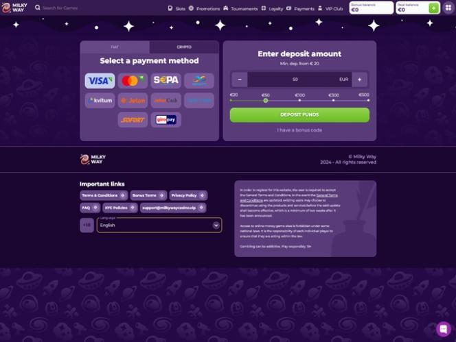 Milky Way Casino 是一家在线赌场,由根据库拉索法律注册成立的公司经营和拥有,并由库拉索政府许可和监管。